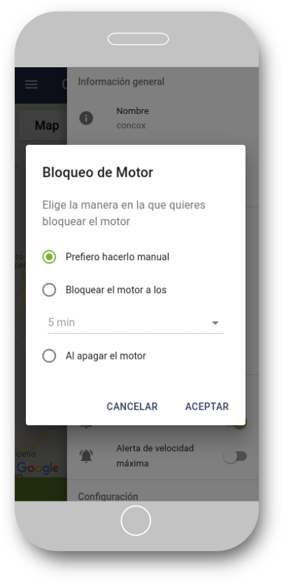 El bloqueo de motor desde la aplicación es uno de los servicios estelares que ofrece la empresa Caebes, ya que con un solo click paraliza el vehículo en caso de contingencia.